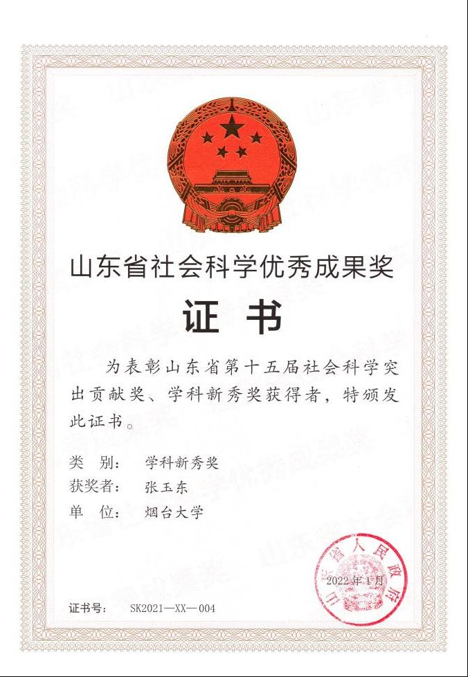 张玉东教授荣获2022年山东省学科新秀奖