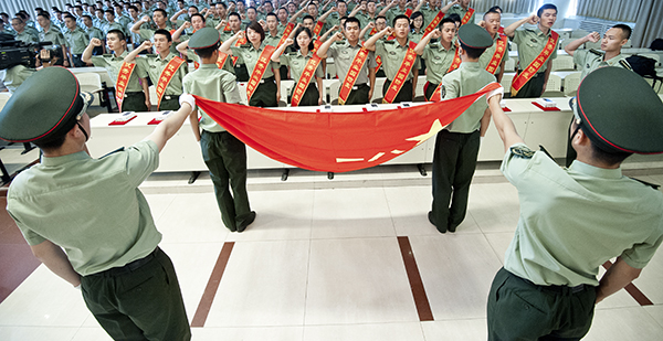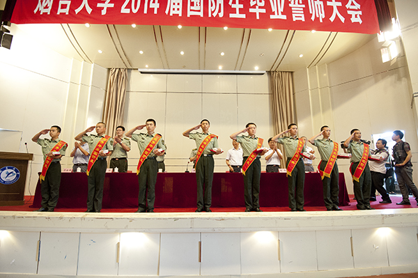 会上还对优秀毕业国防生进行了表彰和奖励。毕业国防生代表王帅作大会发言并带领全体毕业国防生面对军旗庄严宣誓:听从党的召唤,服从组织分配,到部队最需要、最艰苦的地方去,甘于奉献,努力拼搏,勇创佳绩,为母校争光,为党旗添彩,为军旗增辉!