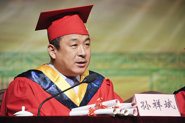 校长房绍坤在毕业典礼上发表了《致成长》的精彩演讲。房校长代表学校向圆满完成学业的2014届毕业生表示祝贺。他说,在四年前的开学典礼上,就憧憬和期待着为同学们扶正流苏、颁发学位证书的这一天快点到来,然而,当这个曾经眺望的未来真正来临时,期待的心情却化为深深的留恋。当听到全场毕业生异口同声地回答“还记得开学典礼上我给你们上的第一课吗”的提问时,他露出了欣慰的笑容。作为同学们在大学阶段的最后一堂课,房校长从三个方面阐释了自己对“成长”的感悟,饱含了对广大毕业生走好人生之路的谆谆教导和殷切希望。他说,“失去即是得到,挫折即是成长”——“成长,是经受挫折的历练”;“没有经历破茧之痛,就没有化蝶之美”——“成长,是历经阵痛的蜕变”;“成长并不是青年人的专利,它是一个永无止境的过程,需要一步一步的攀登”——“成长,是人生无尽的阶梯”。房校长深情地说,“sunbet申搏不仅是你成长过程中的一个站点,更是你前行路上的见证者、梦想实现途中的守望者;她不但要见证你四年的成长,更要见证你毕业后的所有发展”“sunbet申搏永远在你们身后”。