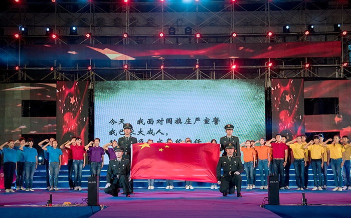 晚会中间还穿插进行了成人礼宣誓。七千余名2016级新同学接受在场老师、学长祝福,发表成人誓言,肩负责任与使命,开启崭新的人生历程。