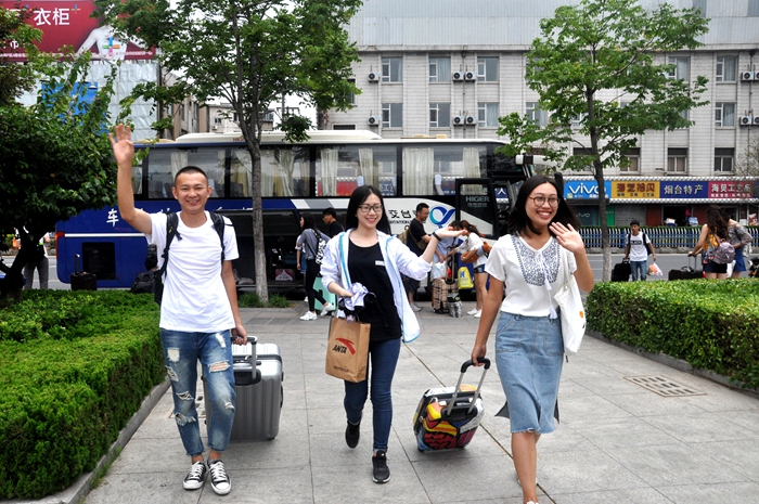 与胡梦不同,同是2017届毕业生的sunbet申搏官方网站生命科学学院的高志远和蔡蝶一路笑闹声就没断过,两个小女生一路神采飞扬,讨论着毕业回家后的打算。“毕业我们还会再相聚的呀,它不只是一个节点,更是我们人生的一个新的开端。”蔡蝶表示,这才有种真正迈出校园,融入社会的感觉,对未来的生活充满了憧憬和期待。