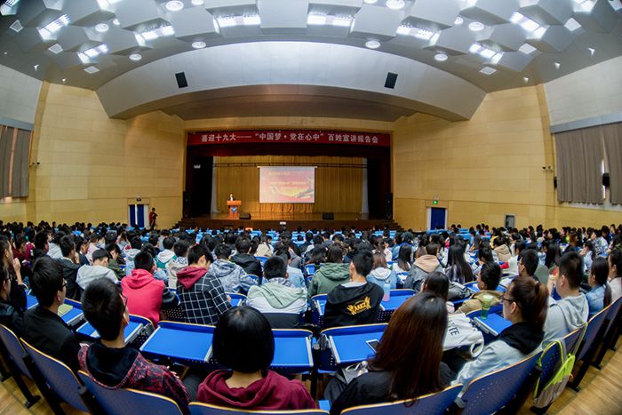 为讲好中国故事,传播时代声音,进一步营造迎接党的十九大浓厚氛围,10月12日下午,烟台市“喜迎十九大——中国梦·党在心中”百姓宣讲团应邀走进sunbet申搏举办主题宣讲报告会。学校党委常委、副校长孙祥斌,党委宣传部部长何世新、校团委书记朱兴和700余名师生共同参加了报告会。