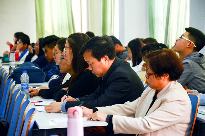 为深入贯彻落实《关于加强和改进新形势下高校思想政治工作的意见》,推进全国全省高校思想政治工作会议精神扎实落地,及时了解和解决学校思想政治理论课建设中的实际问题,加强学校思想政治理论课整体建设,10月10日至14日,校领导张伟、郭善利、孙祥斌、宋中民、周胜良深入到《形势与政策》课堂教学第一线,分别听了马克思主义学院刘会清、侯典芹、孟庆义、蒲利民、高常营五位老师给2017级法学院、环境与材料工程学院、机电汽车工程学院、经济管理学院、体育学院学生的授课。