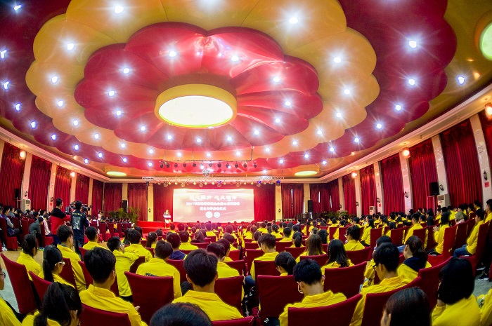 2016年的爱心接力手制作感恩视频,汇报了成为爱心接力手以来的学习生活情况,表示将传递爱心,用实际行动践行公益理念。数学与信息科学学院2017级学生曲军浩代表受资助学生向王振滔慈善基金会表示感谢,并承诺在有能力后至少帮助一名贫困学子,让爱心不断接力下去。随后,全体爱心接力手诵读了王振滔慈善基金会的“家训”。