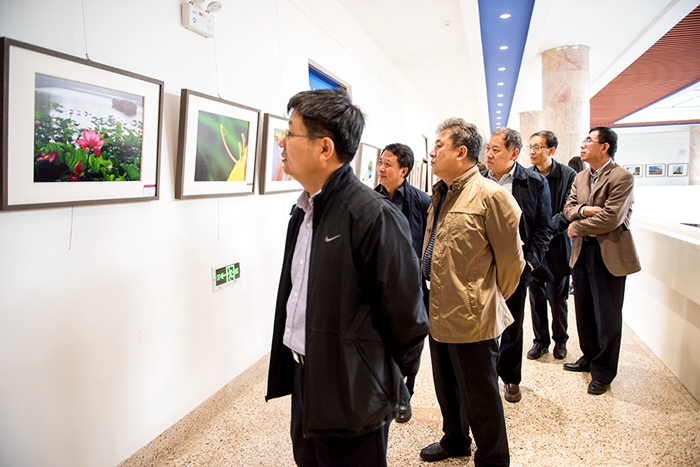 书人生感怀,画校园风景,摄社会百态,展国家繁荣。在中国特色社会主义进入新时代之际,学校举行教工书画展热烈庆祝党的十九大胜利召开。10月24日上午,校党委书记张伟、副校长孙祥斌、宋中民,纪委书记周胜良与党委宣传部、党委统战部、校工会、校团委、学生工作处、机关党总支等部门和部分学院领导一起来到承先图书馆参观教工书画摄影展。张伟指出,作品充分展现了国家过去五年的发展成就,体现了全校教职工对美好生活的追求,我们要不忘初心砥砺奋进,在习近平新时代中国特色社会主义思想引领下,为学校的进一步发展、为中华民族伟大复兴中国梦的实现贡献自己的力量。
