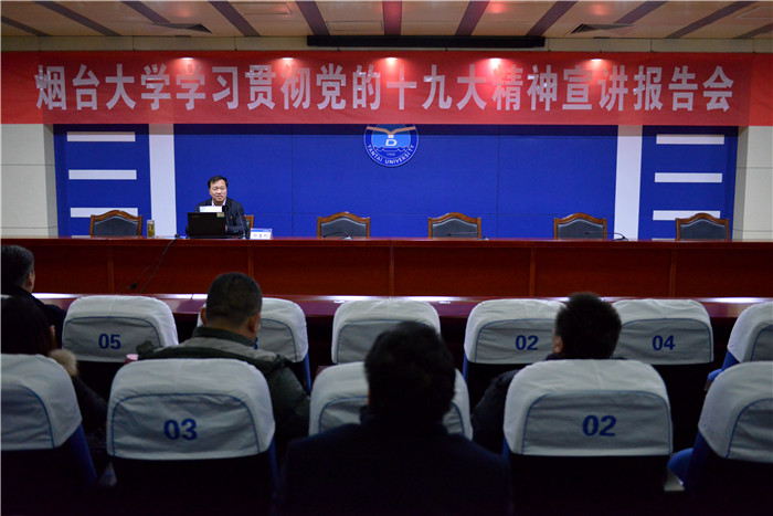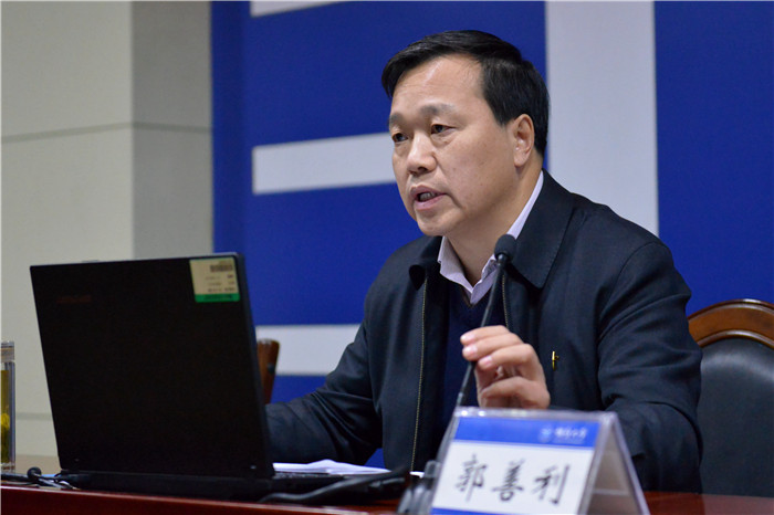 12月12日下午,学校在逸夫厅举办党的十九大精神宣讲报告会,宣讲报告会由党委副书记、校长郭善利主讲。