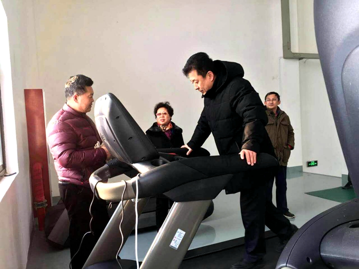 孙祥斌一行一边现场查看场馆一边听取活动中心主任情况汇报,并与大家亲切交谈。孙祥斌对教职工活动中心自2018年1月3日试运行以来精心服务,特别是寒假期间一直坚持每天下午三点到晚上九点开放,为广大教职工提供卫生整洁舒适的健身环境给予充分肯定,对一线员工“雪情就是命令”,第一时间除雪除冰方便大家表示赞赏,听到教职员工积极健身、非常满意的反馈也十分高兴。孙祥斌还对教职工活动中心试运行期间发现的地面排水不畅等问题作了进一步安排。