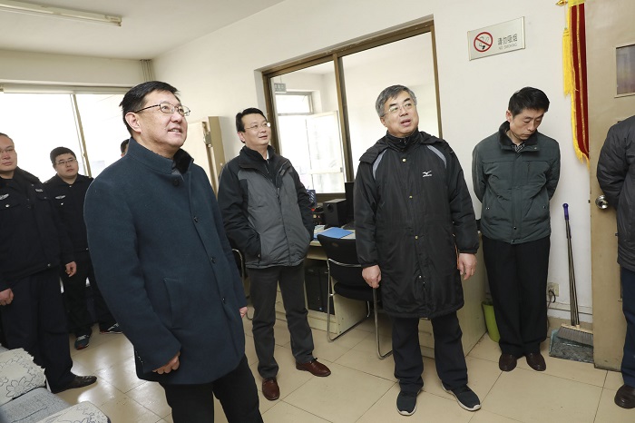 2月7日上午,副校长邓昌亮、王强在学校办公室、校工会、人事处、后勤管理处、保卫处等有关部门负责同志的陪同下,先后来到保卫处、后勤管理处、校医院等单位,看望慰问寒假期间坚守岗位的工作人员,为他们送去节日的祝福和亲切的问候。