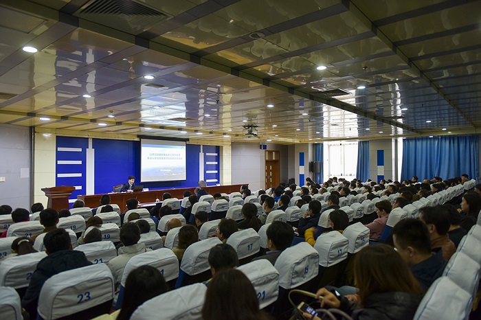 4月6日,全校处级干部学习贯彻党的十九大精神、贯彻落实学校“一二三”战略部署专题培训班启动。省发改委发展规划处处长胡薄同志受邀作题为《以新旧动能转换重大工程为统领,推动山东创新发展持续发展领先发展》的辅导报告。校领导张伟、郭善利、孙祥斌、邓昌亮、宋中民、周胜良、王强以及学校副处级以上干部、教师代表参加了报告会。党委常委、副校长郝曙光主持报告会。