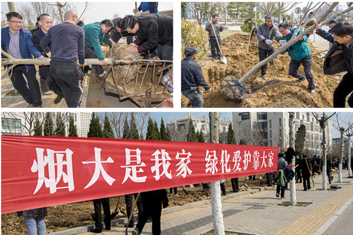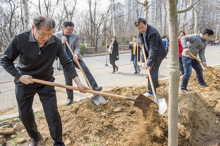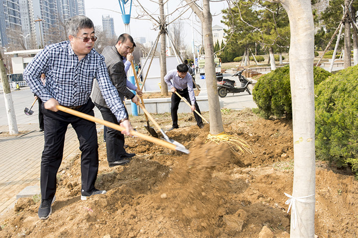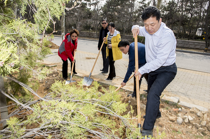 阳春三月芳草绿,又是一年植树时。3月26日上午,学校在学海路北侧开展植树活动。校领导郭善利、孙祥斌、邓昌亮、宋中民、郝曙光、王强与校机关工作人员一起参加了植树活动。