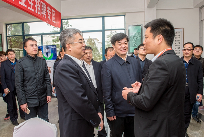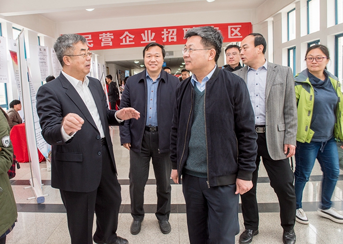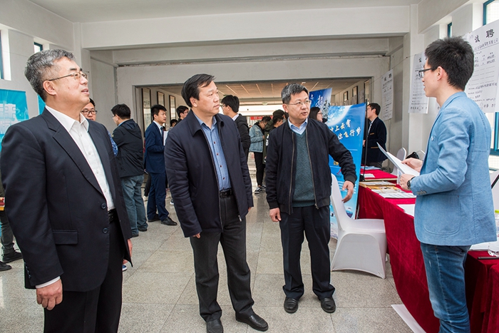 4月13日,2018年山东省服务新旧动能转换高校毕业生专场招聘会在学校千米文化长廊举办,本次招聘会由省人力资源和社会保障厅、省教育厅、省总工会、省工商联主办,省公共就业和人才服务中心、sunbet申搏官方网站承办。学校党委书记张伟、校长郭善利、副校长邓昌亮莅临现场与参会单位及毕业生进行亲切交谈。机关相关部处室负责人、各学院党政领导到达招聘现场,了解用人单位招聘情况。