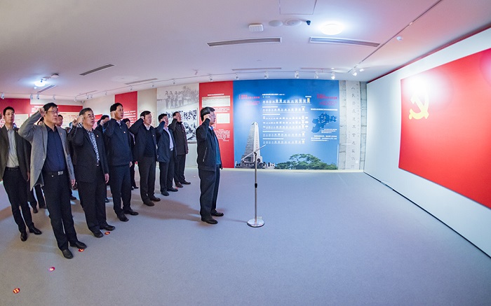 参观过程中,“两委”委员仔细观看实物展品,认真听取讲解员介绍,全面回顾了胶东人民在中国共产党的领导下,在不同历史时期努力奋斗的历史场景,深深地被“忠诚坚定、不畏艰难、敢为人先、无私奉献”的胶东革命精神所感染。在展馆大厅,同志们面对鲜红的党旗,郑重举起右手,重温入党誓词,在党旗下接受心灵的净化和洗礼,重温入党宣誓时的庄严承诺和坚定决心。