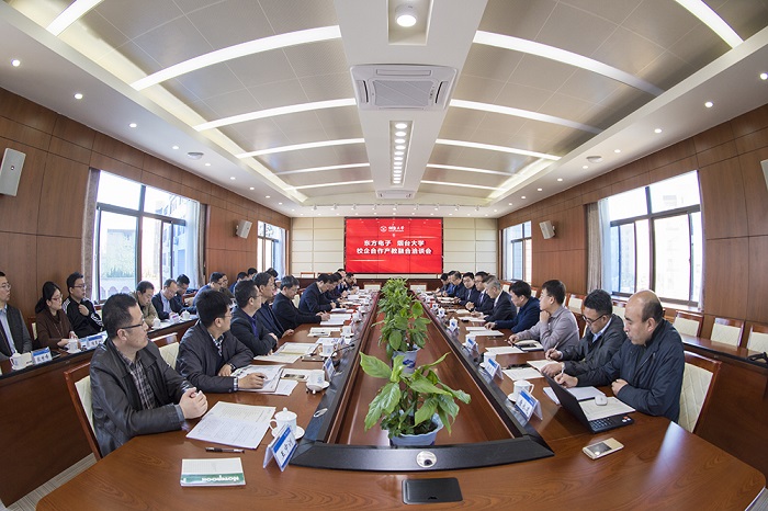 4月26日上午,东方电子股份有限公司董事长丁振华、副总经理陈勇、副总工程师戴宏伟一行来sunbet申搏洽谈校企合作。党委书记张伟、校长郭善利出席洽谈会,会议由张伟主持。学校办公室、服务地方办公室、社科(科技)处、研究生处、人事处、计算机与控制工程学院、光电信息科学技术学院、数学与信息科学学院主要负责人及教师代表参加座谈。
