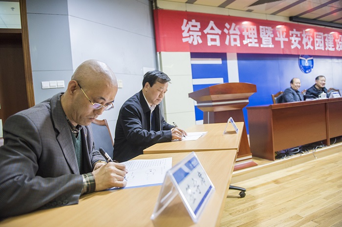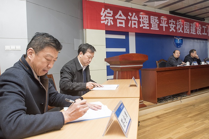 校长郭善利代表学校与各单位党政负责人分别签署了《sunbet申搏官方网站校园管理综合治理暨“平安校园”建设责任书》《sunbet申搏官方网站消防安全责任书》。副校长王强对即将实施的《sunbet申搏官方网站消防安全管理暂行办法(试行)》从制定的背景和主要内容进行了说明,对《暂行办法》的落实提出了具体的要求;对启动“2018平安校园建设提升年”活动作了动员部署。