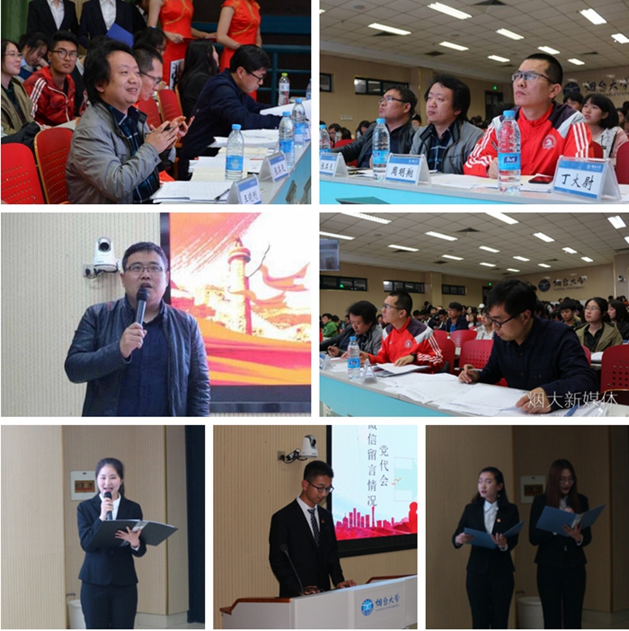 4月22日晚,学习贯彻学校第四次党代会精神新媒体大赛答辩赛在综合楼410举行。活动特邀大众网烟威站编辑部主任张其天,胶东在线新媒体中心主任周明翔,马克思主义学院教授丁大尉,党委宣传部副部长王晓刚担任评审团评委。答辩赛分答辩、提问、点评及颁奖四个环节。参赛作品紧扣主题,内容活泼,既有快闪活动、知识竞赛、师生党员采访等内容,又有图文、漫画、H5、微视频等形式,将学习贯彻学校第四次党代会精神和互联网元素紧密结合,让师生更加直观地学习了解学校第四次党代会精神的内涵。大众网烟威站编辑部主任张其天和胶东在线新媒体中心主任周明翔分别对本次比赛进行了点评。本次新媒体大赛主题鲜明,参赛作品富有创意,采用师生喜闻乐见的形式,掀起了深入学习宣传贯彻学校第四次党代会精神的热潮。大赛创新了新闻宣传的方式,提升了新媒体工作的活力,是学校 “互联网+宣传思想工作”的有益探索。
