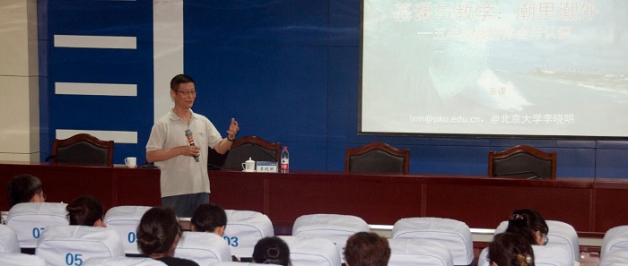 李晓明教授与大家分享了五年来慕课与教学的实践与认识,交流了作为学习者认真学习并完成一门慕课的体会。李晓明作为教师开设两门慕课,以实际行动诠释了“师者,传道授业解惑也”。他从多个角度谈了慕课建设与教学的体会,并以“我们处在这样一个时代——深深知道十年后的高等教育会和现在很不一样,但却不很清楚到底会怎么不一样”作为结语,引起大家对大学课程改革和高等教育发展的思考。报告会后,多位教师与李教授就有关问题进行了深入交流。