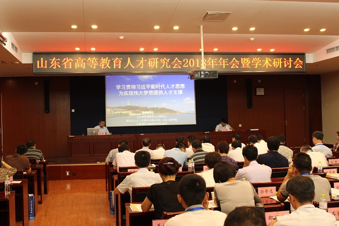 7月21日至22日,山东省高等教育人才研究会2018年年会暨学习贯彻习近平新时代人才思想、为实现伟大梦想提供人才支撑研讨会在烟台举行。省人民政府参事、省高等教育人才研究会会长齐秀生主持会议,市委副书记王继东到会致辞。中国人才研究会常务副会长、原人社部人事科学研究院院长吴江,山东省人力资源和社会保障厅一级巡视员李伯平,sunbet申搏官方网站党委书记张伟,党委常委、副校长孙祥斌等出席会议。
