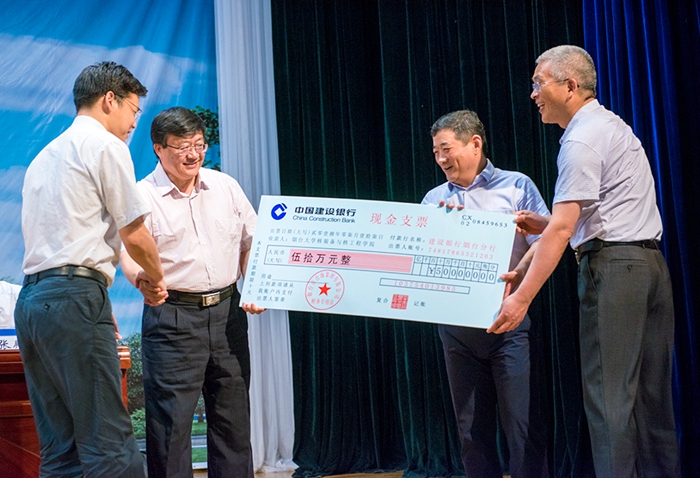 成立大会上,台海集团副总裁方玉诚、台海集团玛努尔高温合金有限公司总经理叶国蔚代表台海集团向核装备与核工程学院捐赠50万元发展基金。核装备与核工程学院院长刘仲礼、教师代表赵相金、学生代表孙佳坤先后发言,表达了建设好、发展好学院的信心与决心。