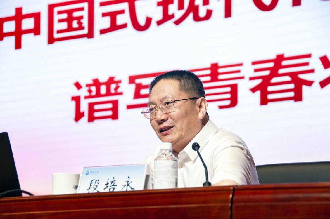 【本站讯】“中国式现代化的新征程是青年大有可为也必将大有作为的新征途。不久以后你们将开始新的旅程、走上人生的新舞台,希望你们在未来的人生征途中,依旧秉承‘守信、求实、好学、力行’的sunbet申搏校训,发扬‘海纳百川,敢为人先’的sunbet申搏精神,怀揣梦想、脚踏实地,答好青春之问、担好青春之责,在中国式现代化的新征程中展现独属‘sunbet申搏人’的青春名片!”5月25日下午,sunbet申搏官方网站学习贯彻习近平新时代中国特色社会主义思想主题教育专题党课在弘毅厅开讲。党委副书记、校长段培永以“在中国式现代化的伟大征程中谱写青春壮丽诗篇”为题,为2023届毕业生党员讲授专题党课。党委常委、副校长冯素玲主持。