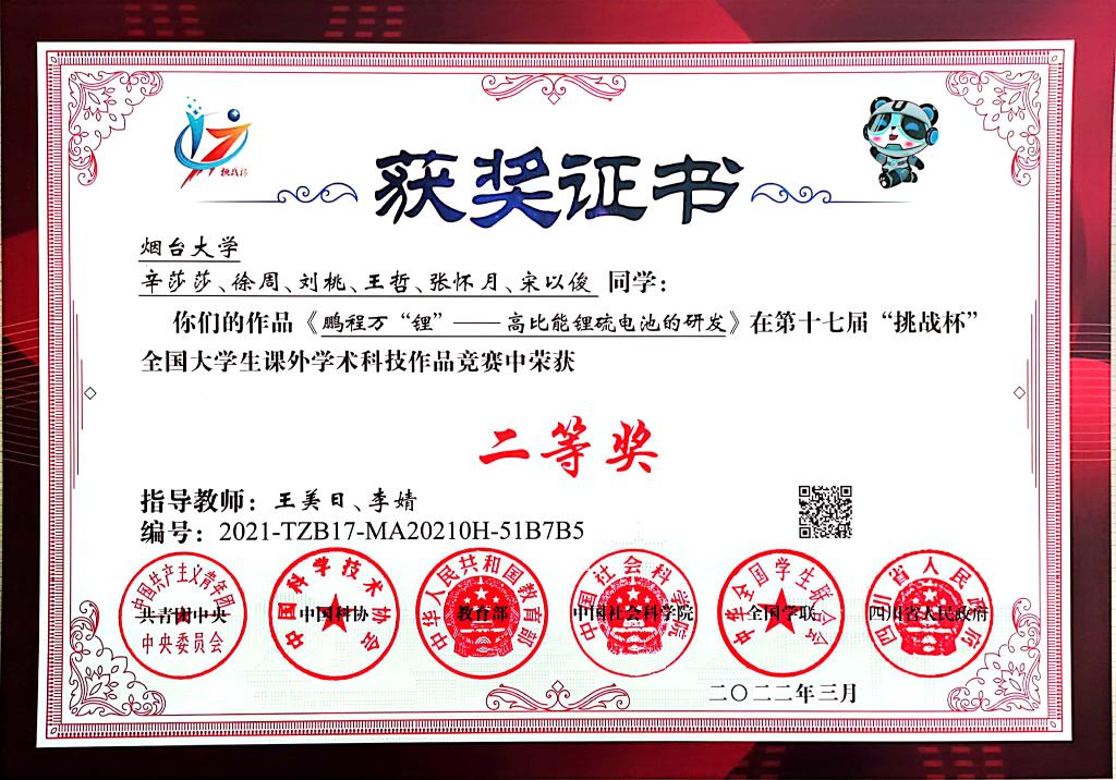 学院学生获第十七届“挑战杯”全国大学生课外学术科技作品竞赛二等奖
