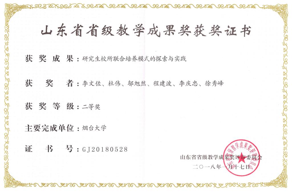 注重示范引领,加强师德建设。学院举办教师节“师德标兵”“导师标兵”等表彰活动,注重榜样引领,涌现出“山东省优秀研究生指导教师”崔洪涛,“山东省高校优秀辅导员”张婷,“烟台市有突出贡献的中青年专家”吕宏缨,“烟台市巾帼建功楷模”“sunbet申搏官方网站师德标兵”李桂芝,sunbet申搏官方网站优秀教师刁屾等一大批先进典型。发挥“山东省黄大年式教学团队”的带动作用和全体党员的先锋模范作用,“山东省优秀党员”任万忠教授带领的团队,创造“碳四”分离成套工艺技术,获得中国专利奖金奖。
