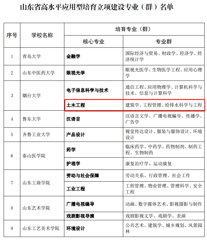 土木工程专业获批山东省高水平应用型培育立项建设专业(群)