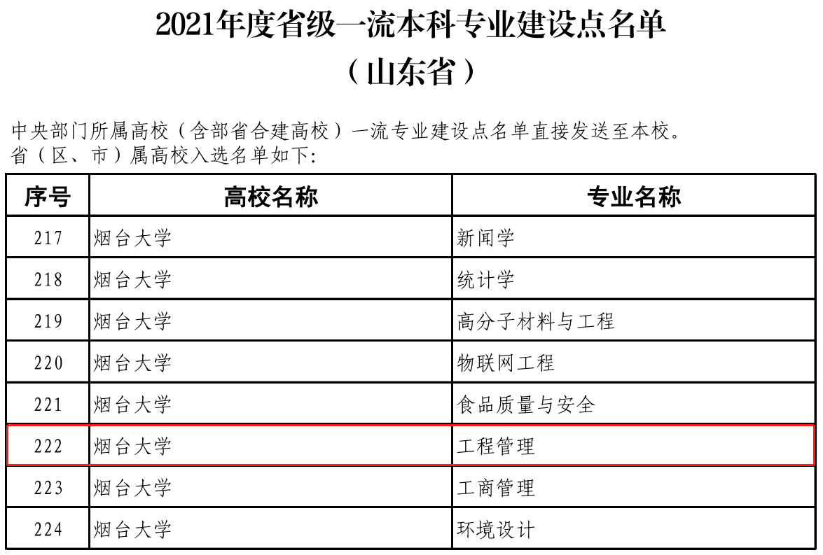工程管理专业获批山东省一流专业建设点