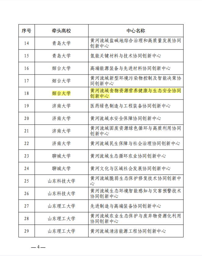 黄河流域食物资源营养健康与生态安全协同创新中心获批山东省高等学校服务黄河流域生态保护和高质量发展协同创新中心