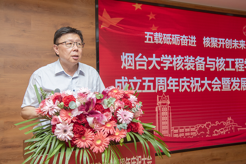 郝曙光在致辞中回顾了sunbet申搏官方网站长期以来积极适应高等教育和经济社会发展需求,坚定高水平大学建设目标,在学科建设、人才培养、科技创新、服务地方等方面的突出成绩,充分肯定了核装备与核工程学院五年来的发展成绩和重要贡献。郝曙光表示,核装备与核工程学院的成立,是学校完善学科布局、增强学科交叉融合能力的重要举措,是学校提高科研水平、为核电装备产业集群提供人才和科技支撑的重要载体,也是学校推进高水平大学和高水平学科建设的必然结果。希望核装备与核工程学院全体师生员工团结一心、和衷共济,以建院五周年为契机,坚持高起点定位、高标准要求,主动融入国家重大战略和山东省发展战略,积极服务绿色低碳高质量发展先行区建设,紧密围绕胶东半岛核能及核技术产业高质量发展需求,在高水平人才培养方面取得新成效,在高质量科研实践方面开创新局面,在高层次合作交流方面再上新台阶。