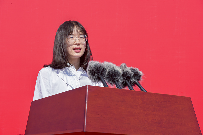 接受献花的教师代表、化学化工学院金明善老师表示,“每次参加毕业典礼,都觉得特别震撼,这是我担任班主任送出校门的第四届学生,特别激动。希望每一名毕业生到岗位上都可以尽好自己的责任和义务。”