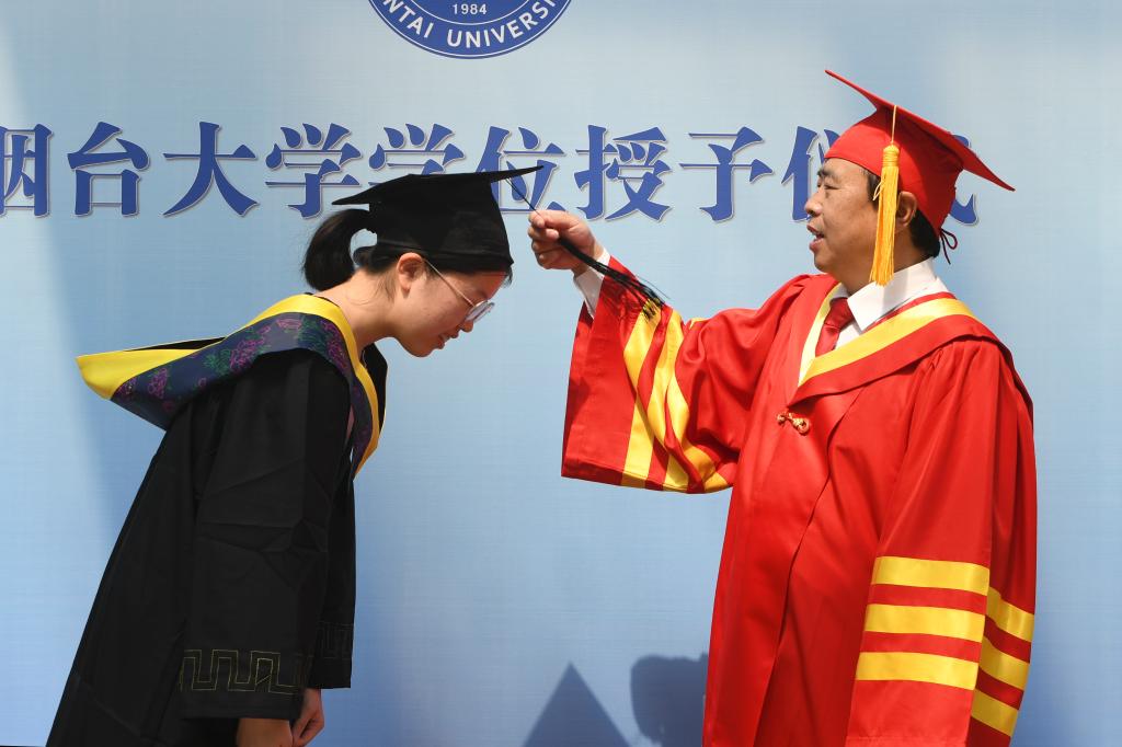 随后,学校在大学生活动中心举行了庄重的学位授予仪式。学校领导为毕业生逐一颁发学位证书、拨穗正冠、握手致意。毕业生们手捧学位证与校领导合影留念。镜头里,留下一个个永恒的美丽笑靥。