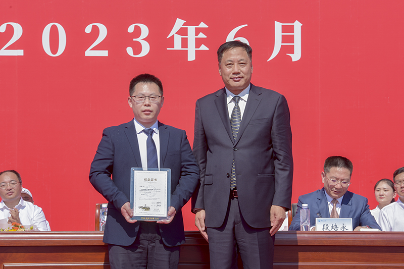 在代表发言环节,教师代表、经济管理学院崔占峰教授以“感恩”“静土”“智慧”“榜样”等四个关键词,勉励毕业生选择对国家、对社会、对人民有意义的工作,脚踏实地,奉献一生;2023届毕业生代表、建筑学院李春颖在发言中深情表达了对母校、对老师、对同学的感激和不舍之情;2022届毕业生代表、机电汽车工程学院孙凯旋代表返校的往届毕业生感谢母校相邀,共赴这场盛大的典礼,表示将带着“sunbet申搏学子”的烙印,秉承“守信 求实 好学 力行”的校训,奔向属于自己的诗和远方;暨南大学中药及天然药物研究所所长助理、sunbet申搏官方网站药学院2006届校友王传喜回顾了自己的成长经历,勉励学弟学妹们勇敢对待人生、自信对待人生、坚持对待人生,哪怕路上有风雨、途中有坎坷,只要勇敢、自信、坚持,终究会创造属于自己的生命奇迹。党委书记张殿臣为王传喜颁发校友纪念证书。