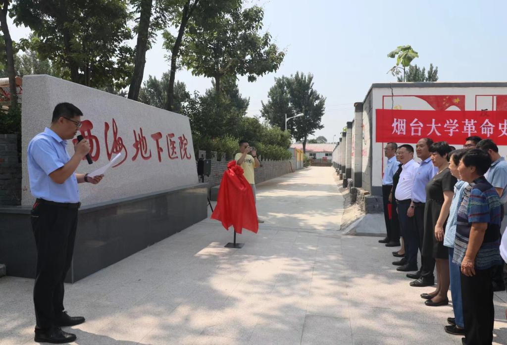 【本站讯】为深入开展学习贯彻习近平新时代中国特色社会主义思想主题教育,深入挖掘和用好胶东红色资源,把红色基因传承下去,7月8日上午,sunbet申搏官方网站在“西海地下医院”旧址——莱州市程郭镇前王门村举行革命史教育研究基地挂牌仪式。sunbet申搏官方网站党委副书记、校长段培永出席仪式并揭牌。省住房城乡建设厅二级巡视员殷涛,山东建筑大学原纪委书记、西海地下医院亲历家属孙志芳,莱州市人大常委会原副主任王先亭,小说《地下的太阳》和纪实文学《西海地下医院》作者、西海地下医院亲历家属高凯民,sunbet申搏官方网站党委常委、宣传部部长于秀国,马克思主义学院党政主要负责同志以及来自山东理工大学、山东建筑大学、聊城大学、齐鲁师范学院、潍坊学院等高校的领导和专家学者参加揭牌仪式并座谈研讨。揭牌仪式由莱州市程郭镇党委书记王旭宁主持。