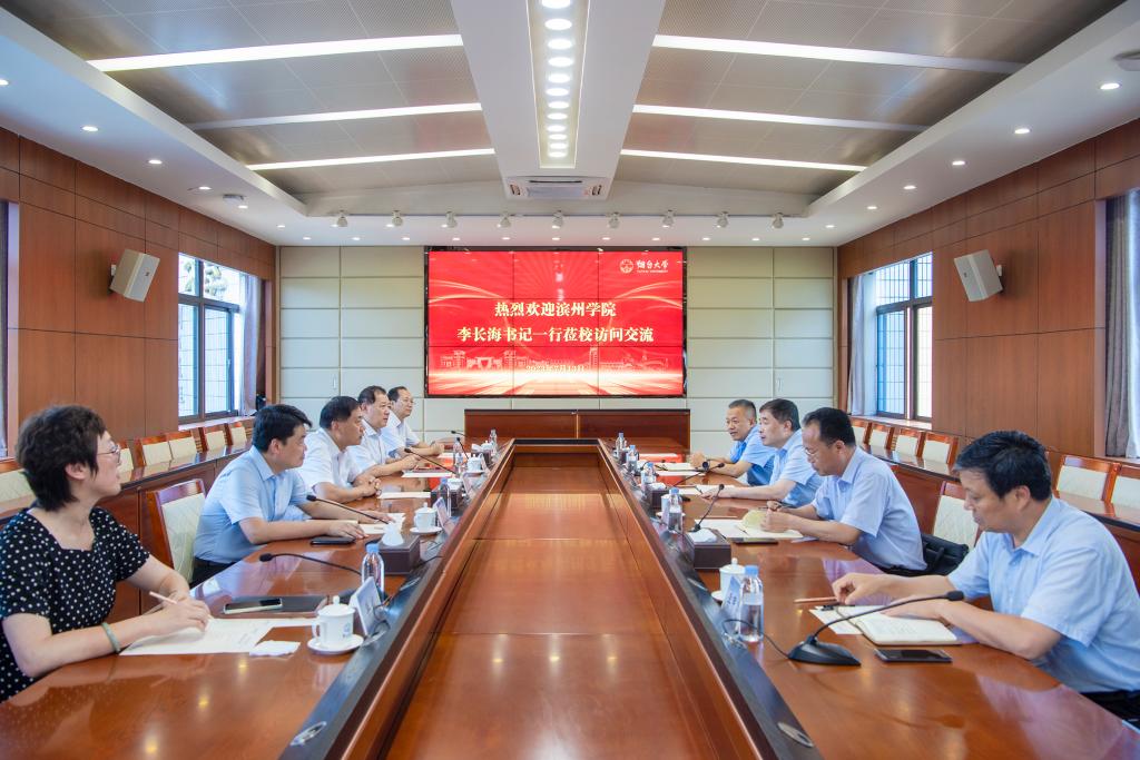 【本站讯】7月13日,滨州学院党委书记李长海,党委委员、副校长郭新伟一行4人来校交流。学校党委书记张殿臣,党委常委、副校长宋中民参加会见并进行座谈交流。
