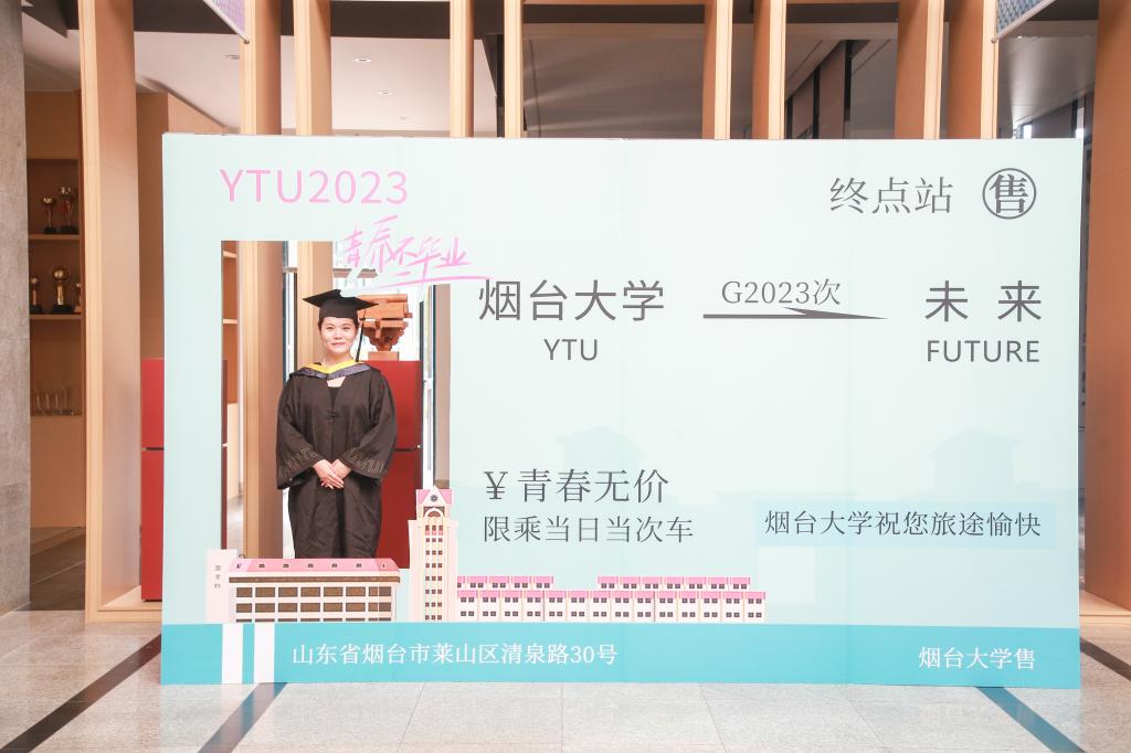 典礼结束后,毕业生们在活泼新颖的毕业季打卡墙前拍照留念的身影,构成一道亮丽的风景线。展板上,“承厚德守信求实烟园铭志,正风华好学力行四海逐梦”等话语传递着学校对毕业生们的美好祝愿。