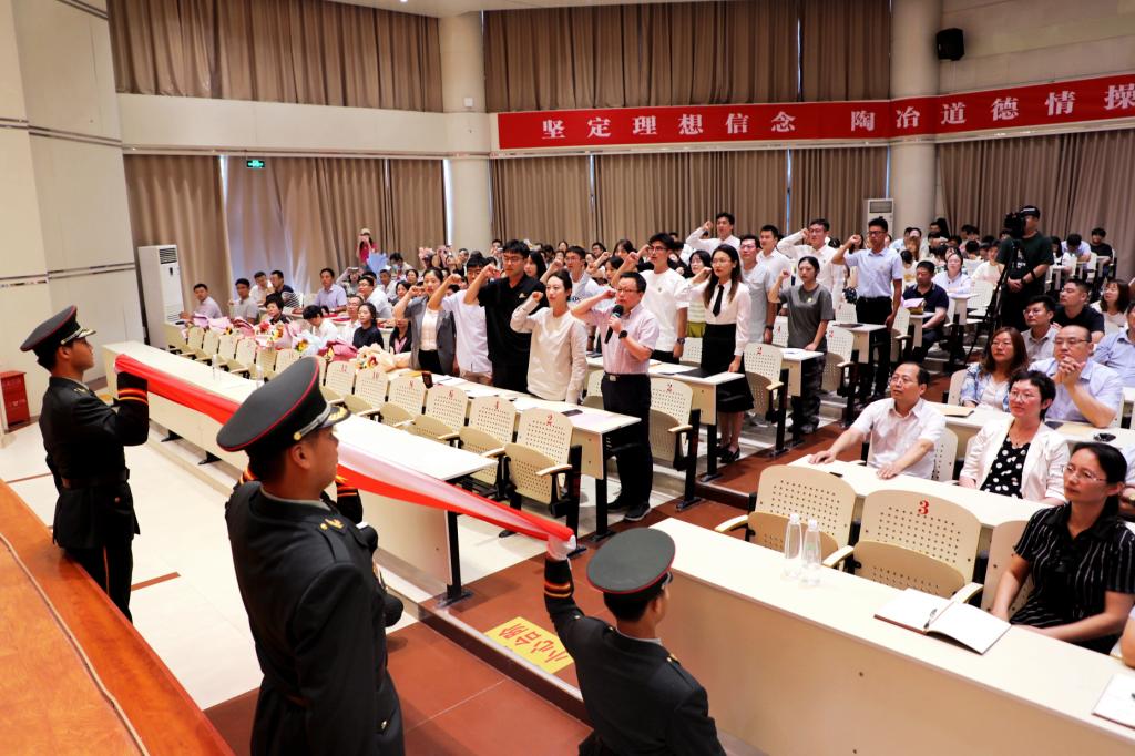 “我志愿加入sunbet申搏官方网站,成为一名光荣的人民教师!我宣誓:爱国守法,敬业爱生,教书育人,知行合一……牢记使命,不忘初心,做党和人民满意的好老师,为崇高的教育事业而努力奋斗!”在学校青年创新人才协会理事长、生命科学学院王绪敏教授领誓下,学校新入职教师佩戴sunbet申搏“孺子牛”徽章,面向国旗许下铮铮誓言。