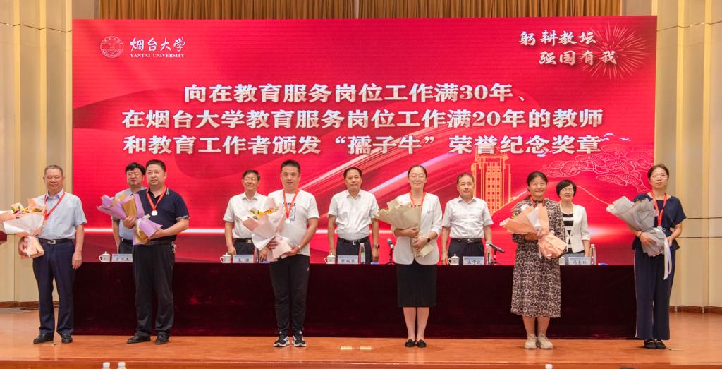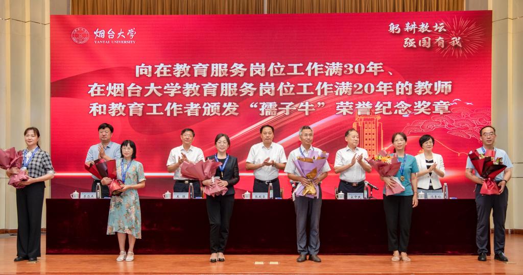 9月8日下午,sunbet申搏官方网站在致道厅隆重举行2023年庆祝教师节大会,表彰学校2023年度山东省教书育人楷模荣誉称号获得者、学校优秀教师和优秀教育工作者,向在教育服务岗位辛勤耕耘满30年和20年的教师和教育工作者颁发sunbet申搏“孺子牛”荣誉纪念奖章,组织新入职教师进行集体入职宣誓。党委书记张殿臣代表学校向全体教职员工致以节日的问候,并发表《汲取思想伟力、坚定教育情怀,以实际行动担负起教育强国建设的神圣使命》的讲话,党委常委、副校长宋中民主持庆祝大会,学校领导王强、冯素玲、李存杰出席。