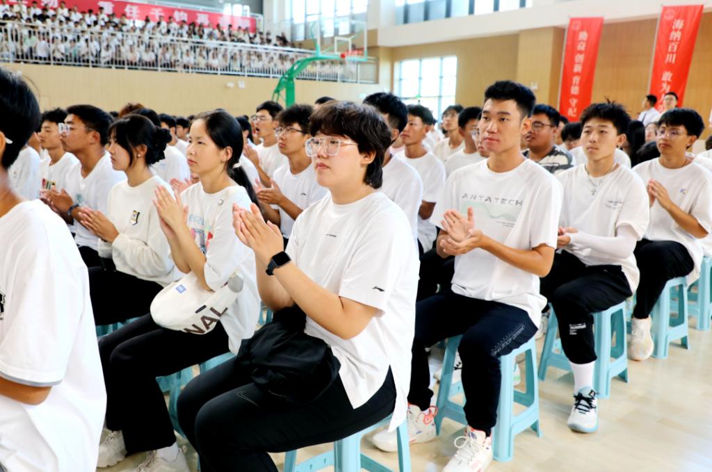 在校友及师生代表发言环节,1993级生化系校友、四高卫士健康产业集团董事长、临沂市校友会会长杨中锋勉励学弟学妹们珍惜时光、踔厉奋发、笃行不怠、勇于追梦。教师代表,化学化工学院刘杰勉励同学们在新校区脚踏实地、做好当下,放眼未来、积极规划,磨练毅力、持之以恒,为强国建设贡献力量。在校研究生代表、海洋学院陈冠宇表示将担当敢为、主动愿为、乘势作为,实践青春无悔的诺言。本科生新生代表、外国语学院高玉洁表示,将秉持sunbet申搏精神,乘风破浪,书写精彩篇章。
