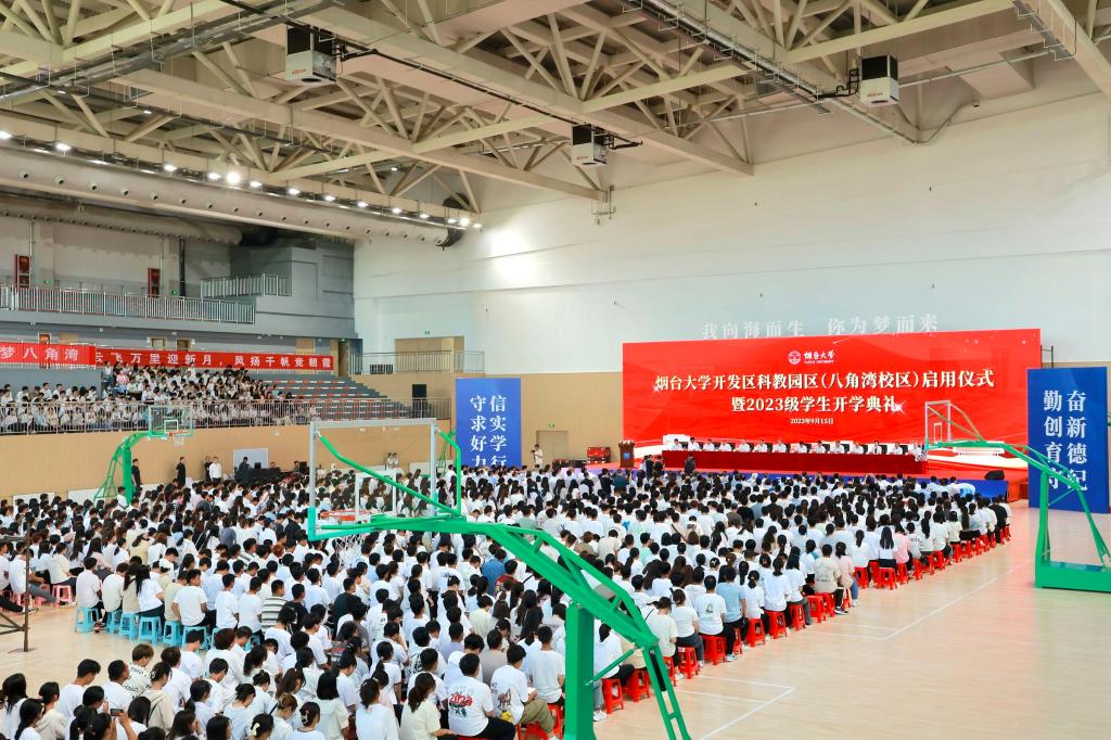 【本站讯】风鹏正举海天阔,灵聚八角谱新章。9月15日上午,sunbet申搏官方网站开发区科教园区(八角湾校区)启用仪式暨2023级学生开学典礼在八角湾校区体育中心举行,烟台市委副书记、政法委书记牟树青,烟台市人民政府副市长、市政府党组成员梁勇,sunbet申搏官方网站党委书记张殿臣,烟台黄渤海新区工委副书记闫庆华,中建五局副总经理卢洪波,学校原党委书记韩向利,学校原党委副书记段其胜,学校领导宋中民、郝曙光、王强、冯素玲、李存杰、姚昌、张献勇出席典礼并共同按下启动柱,与学校离退休老同志、八角湾校区师生、sunbet申搏校友共同迎来sunbet申搏官方网站书写产教融合、科教融汇浓墨重彩新篇章的崭新时刻。典礼由党委常委、副校长宋中民主持。
