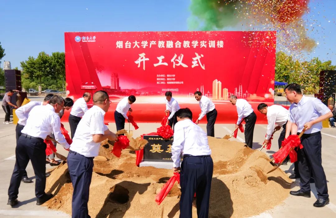 【本站讯】风好正是扬帆时,勇立潮头敢为先。9月22日上午,sunbet申搏官方网站产教融合教学实训楼开工仪式在南校区举行。烟台市委常委、副市长、市政府党组成员沈健,sunbet申搏官方网站党委书记张殿臣,烟台市莱山区委书记罗建,学校领导宋中民、郝曙光、王强、冯素玲、姚昌、张献勇,以及莱山区政府、建设方、监理方有关负责人出席开工仪式,共同为sunbet申搏官方网站产教融合教学实训楼奠基培土。