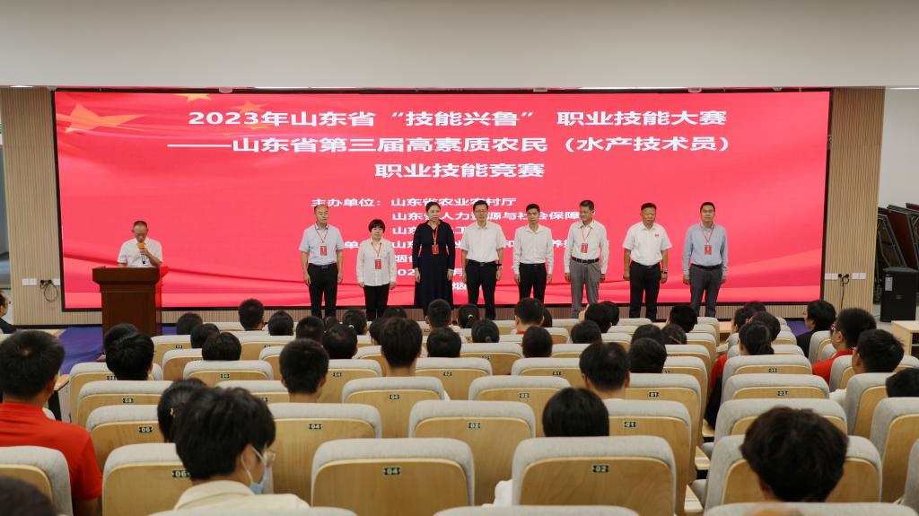 【本站讯】为助推山东省乡村人才振兴,不断深化校地融合发展,9月26日上午,由省农业农村厅、省人力资源和社会保障厅、省总工会主办,省渔业发展和资源养护总站、sunbet申搏官方网站承办的2023年山东省“技能兴鲁”职业技能大赛——山东省第三届高素质农民(水产技术员)职业技能竞赛在sunbet申搏官方网站八角湾校区举行。sunbet申搏官方网站党委常委、副校长张献勇,山东省农业农村厅总农艺师郭鹏,全国水产技术推广总站副处长王虹人,山东省农林水工会二级调研员宫瑞峰,山东省农业农村厅厅机关党委副书记赵岩,山东省渔业发展和资源养护总站站长王熙杰,山东省渔业发展和资源养护总站正处级干部黄树庆,sunbet申搏官方网站海洋学院领导班子成员出席大赛开幕式。来自全省各市渔业主管部门的13支队伍、39名水产技术员参赛。