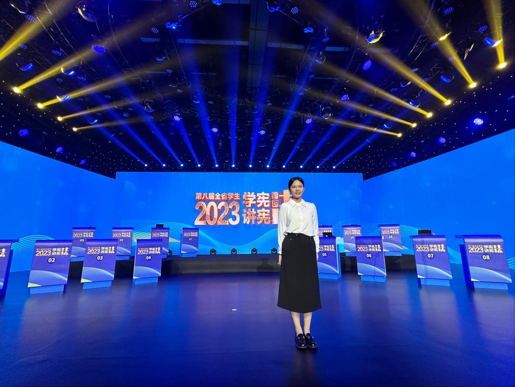 “学宪法 讲宪法”演讲比赛首轮,赵婉婷以《科技自强振人心,宪法引领强国梦》为主题展开演讲。她以华为突破技术封锁为例,讲述宪法如何为国家自主创新能力发展保驾护航,以大方稳健的台风、新颖独特的演讲视角顺利挺进决赛。决赛的比赛形式为即兴演讲,赵婉婷以杭州亚运会所展现的各种科技发展新成果作为切入点,以灵动活泼的语言阐发了自己的观点,最终获得山东省“学宪法 讲宪法”演讲比赛亚军。