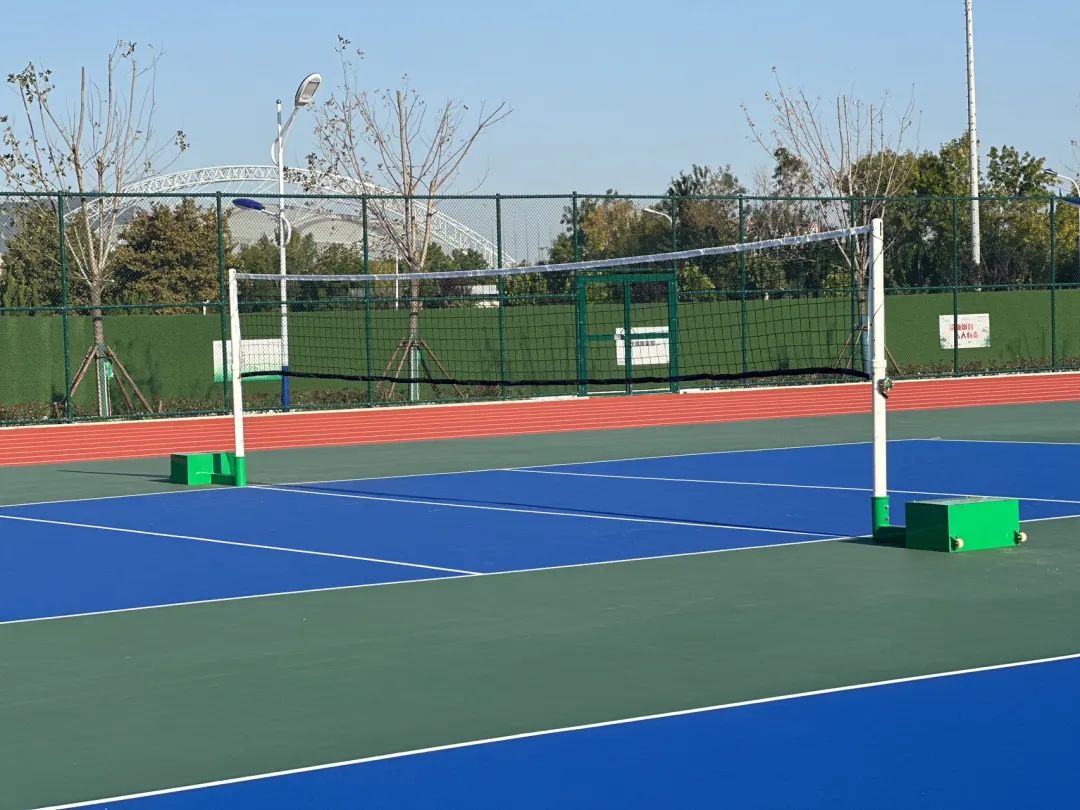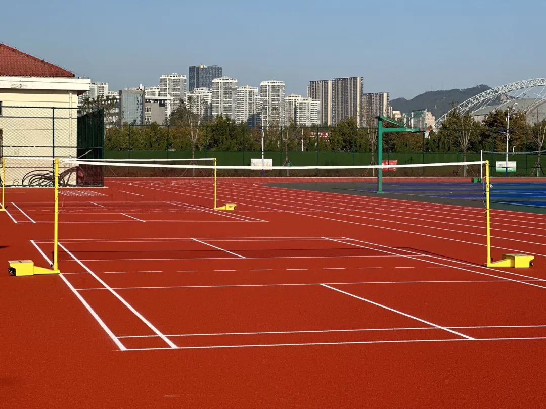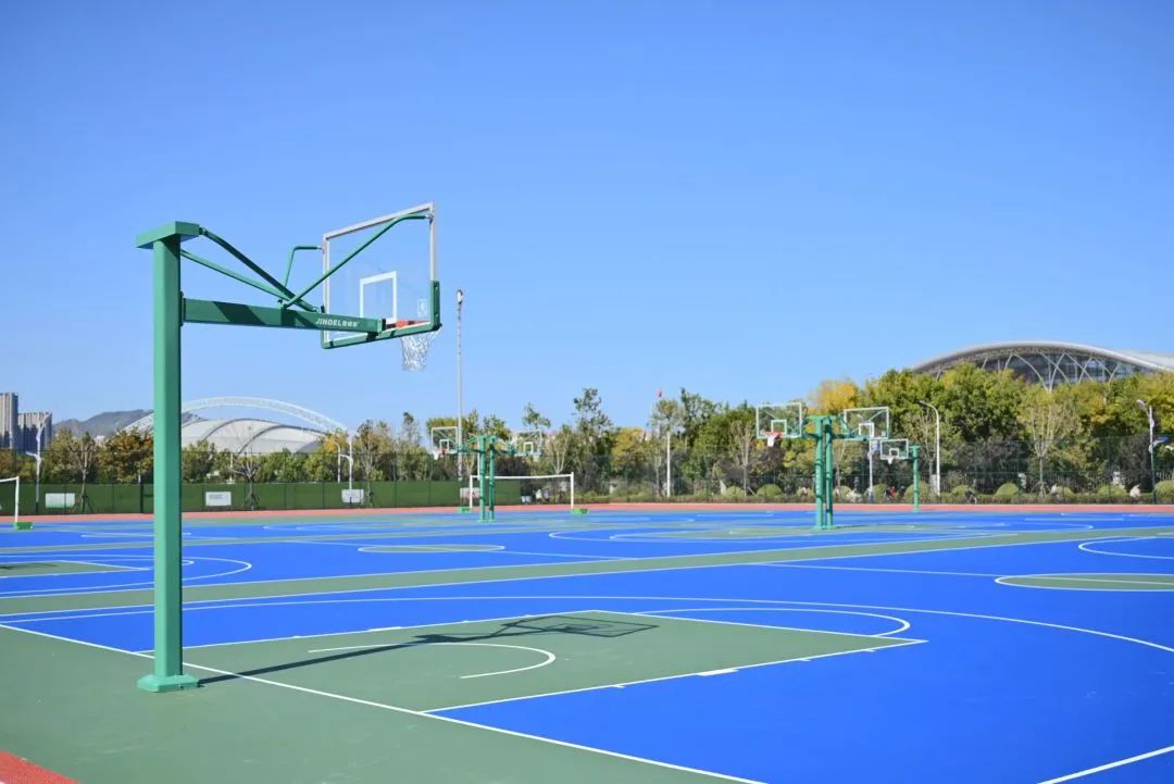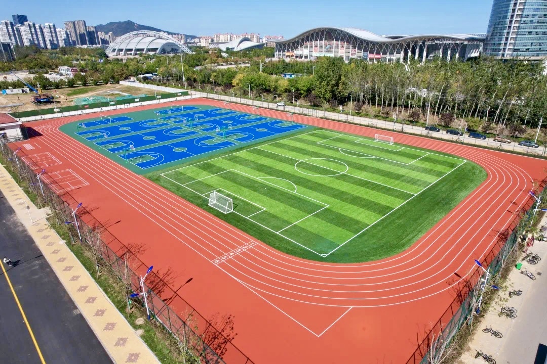 蓝天白云下,运动场焕然一新,为同学们享受运动乐趣、强身健体、舒缓心情提供全新的选择。经典的红绿蓝色搭配,给南校区增添别样色彩。红色的跑道和绿茵场相映成趣,让人眼前一亮,瞬间提升了南校区的“颜值”。
