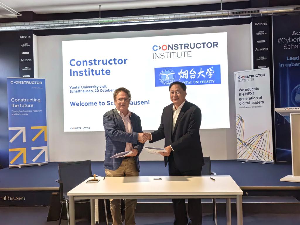 在德国康斯特大学瑞士分校(研究所),张殿臣与该校负责人伯纳德·米尔分别介绍学校开展国际合作情况,并代表两校签署校际合作备忘录,决定尽快启动学生研修项目,积极探索在教师学术交流、博士生和博士后培养、教师进修等领域的合作。