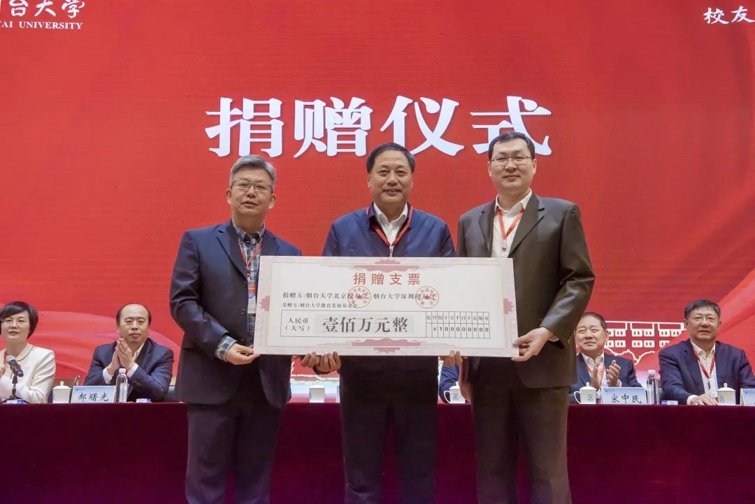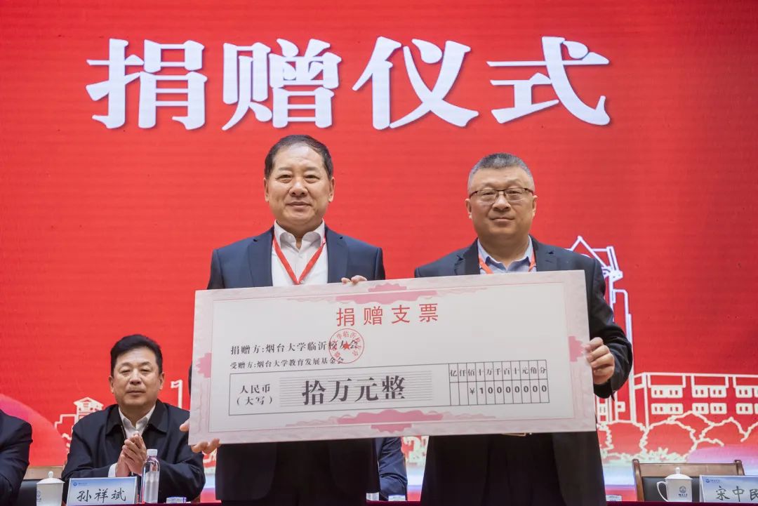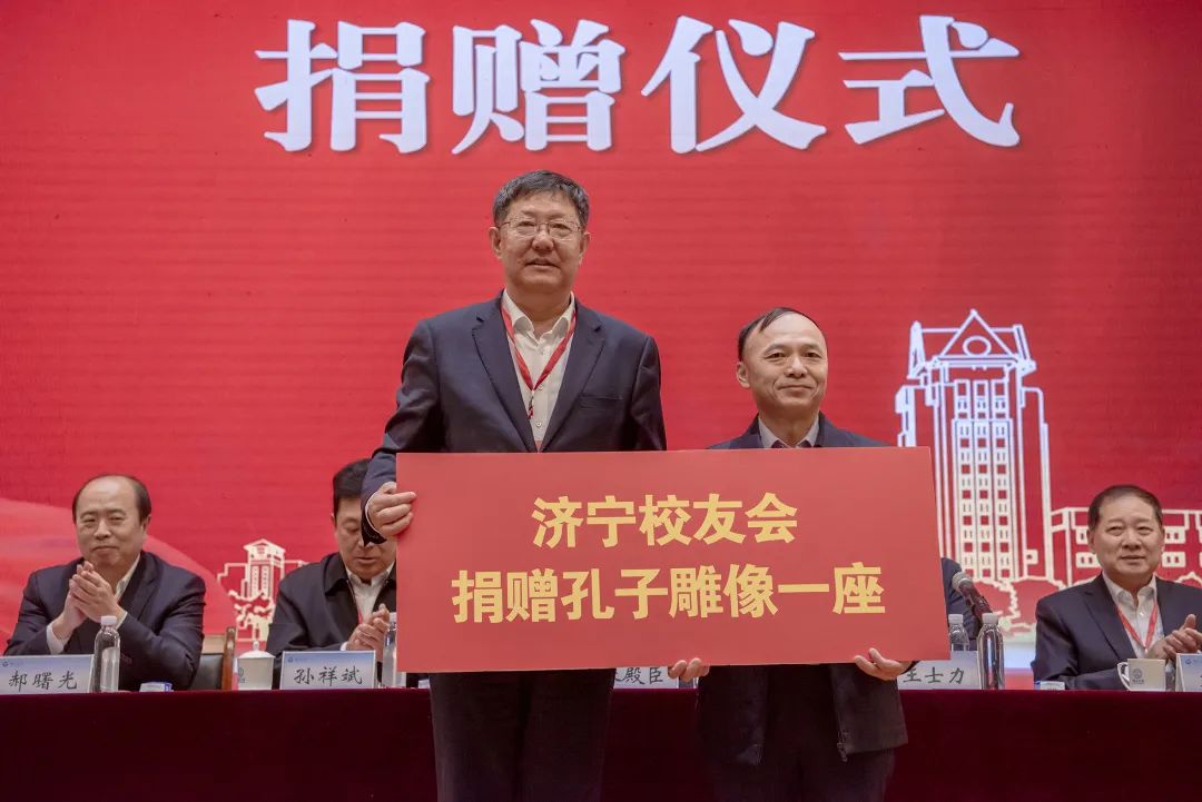 捐赠仪式中,北京校友会、深圳校友会捐赠100万元,临沂校友会捐赠10万元,建筑学院2007级校友朱柯蒙和母亲共同捐赠10万元,济宁校友会捐赠孔子雕像一座,部分校友设立奖助学金、参加“绿色烟园”树木认养活动。学校领导代表学校依次接受校友捐赠,北京校友会常务副会长董一鸣、深圳校友会副会长梁立伟、临沂校友会会长杨中锋、建筑学院2007级校友朱柯蒙的母亲孔英姿、济宁校友会负责人李贵维,校友代表姜华、王伟、隋阳旸、孙伟、董锟、庞磊、徐康、张海涛、邢雷、韦如雷、张建伟、卢佳琦等到主席台接受捐赠证书。