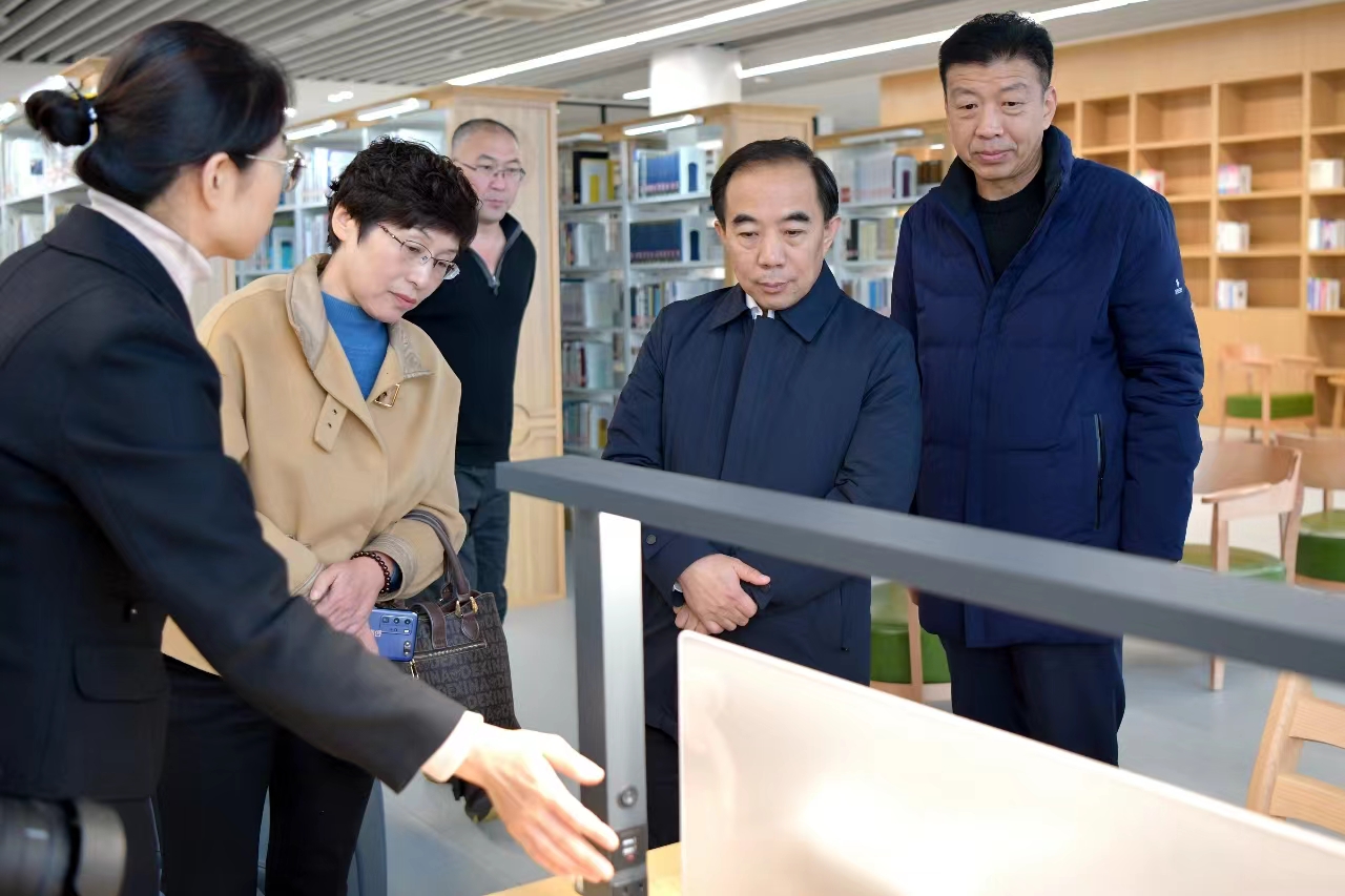 【本站讯】11月15日下午,山东省图书馆学会理事长、山东省图书馆党委书记、馆长刘显世,副馆长周玉山在烟台市文化和旅游局副局长蒲晓虹、烟台图书馆馆长宋书兰陪同下来校,到八角湾校区图书馆交流指导。