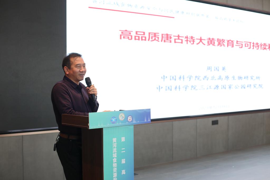 中国科学院西北高原生物研究所周国英研究员作《高品质唐古特大黄资源繁育与可持续利用策略》主题报告