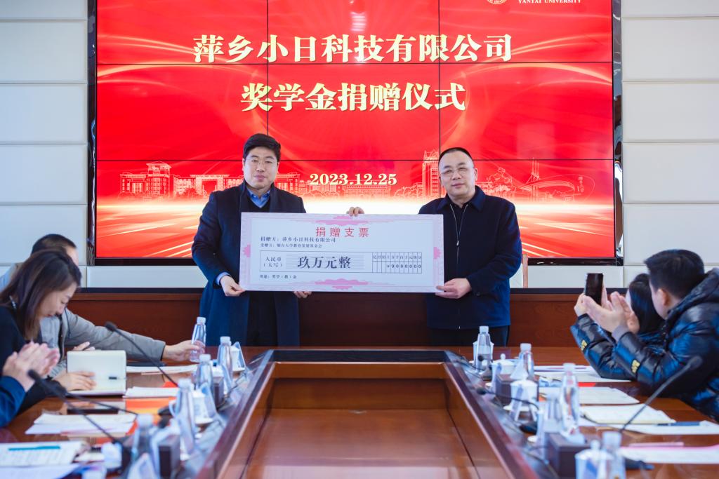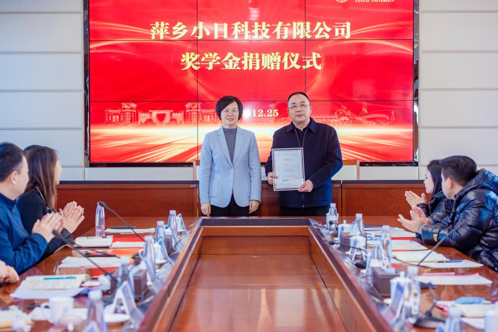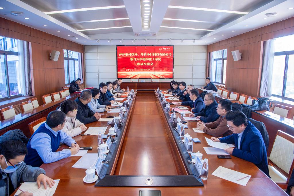 【本站讯】校企合作辐射全国,产教融合再谱新篇,sunbet申搏官方网站科技成果在萍乡“落地生根”。12月25日上午,萍乡市科技局局长周斌、萍乡小日科技有限公司董事长王树望一行来校,签署战略合作协议开展科技成果转化并进行奖学金捐赠。党委常委、副校长冯素玲出席,合作发展处(服务烟台办公室)、科技处、化学化工学院相关负责人和教师参加座谈。合作发展处(服务烟台办公室)处长孙旭涛主持。