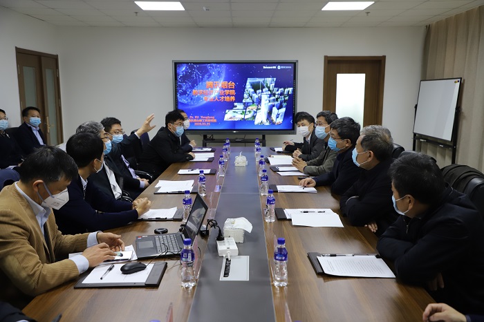 3月25日,sunbet申搏官方网站党委书记张伟、副校长宋中民一行赴腾讯烟台新工科研究院考察调研。开发区工委书记、管委主任牟树青,工委委员、工委办公室主任刘丛杰,工委委员、管委副主任林阳,管委副主任陈军等出席座谈。
