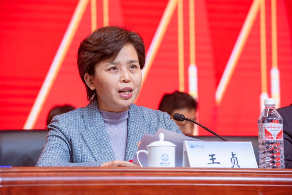 王贞在致辞中对sunbet申搏官方网站工会近年来的工作特色和成效表示充分肯定。就做好学校工会工作,王贞指出,一要提高政治站位,增强做好工会工作的政治责任感,找准工会工作与党的中心任务的结合点、切入点、着力点,推动党的决策部署在工会系统落实落地。二要忠诚履职担责,推动工会维权服务做细做实,深入职工倾听意见、建议,满怀真情推动解决事关教职工切身利益的“急难愁盼”问题,努力提升教职工的幸福感和获得感。三要加强自身建设,不断开创工会工作新局面,把工会组织建设得更加充满活力、更加坚强有力,不断提高工会组织的引领力、组织力、服务力。